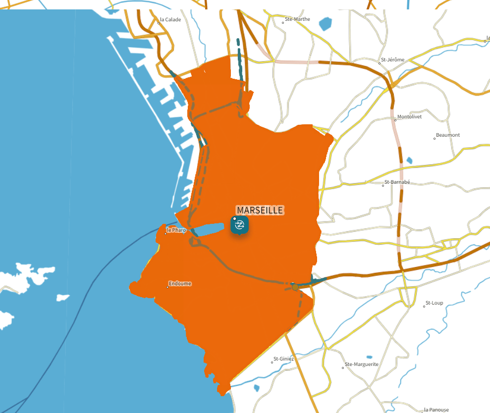 De ZFE van Métropole d’Aix-Marseille-Provence beslaat 19,5 km² en omvat specifieke boulevards en straten, zoals l’avenue du Cap Pinède en les boulevards Capitaine Gèze.