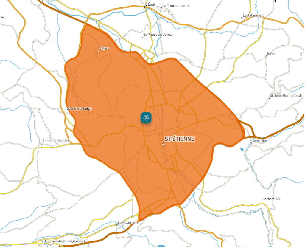 Een overzichtskaart van de permanente milieuzone in Saint-Étienne.